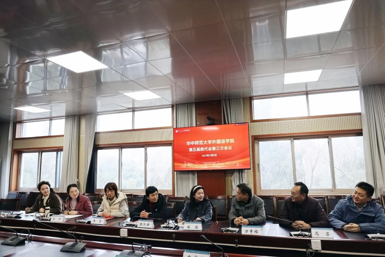 2025年1月8日上午,外国语学院第五届教代会第三次会议在3504报告厅隆重举行。华中师范大学党委副书记查道林、校工会副主席易仲芳、学院党委书记麻旎、院长罗良功、外国语学院教代会代表以及部分教师代表共同出席了此次会议。