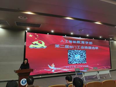 (人工智能教育学部讯 卢思逸)根据华中师范大学工会委员会关于部门工会换届选举工作安排,2022年10月28日,人工智能教育学部在南湖综合楼1楼报告厅召开了全体教职工大会,进行了新一届工会委员会换届选举。第一届学部工会副主席朱晓亮主持会议。