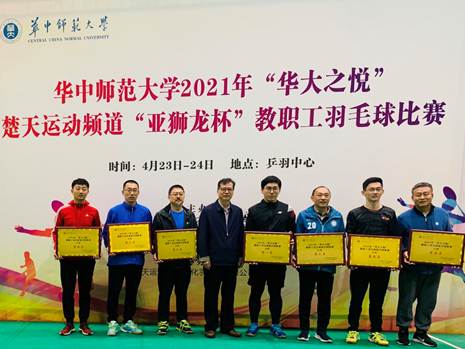 (通讯员 叶洋子)为庆祝中国共产党100周年华诞,丰富职工业余文化生活,进一步增强我校职工向心力和凝聚力,激发广大职工的爱党爱校热情和工作激情,2021年4月23日至4月24日,由校工会主办、教职工羽毛球俱乐部承办、楚天运动频道协办的华中师范大学“华大之悦”教职工羽毛球比赛在乒羽中心举行。全校39支代表队600余名教职工参赛。