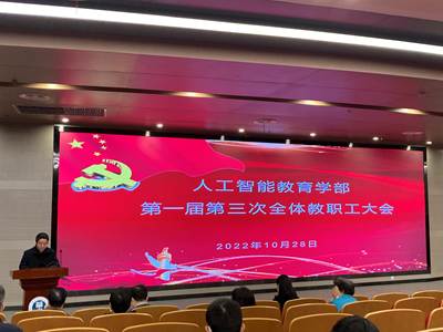 (人工智能教育学部讯 卢思逸)根据华中师范大学工会委员会关于部门工会换届选举工作安排,2022年10月28日,人工智能教育学部在南湖综合楼1楼报告厅召开了全体教职工大会,进行了新一届工会委员会换届选举。第一届学部工会副主席朱晓亮主持会议。