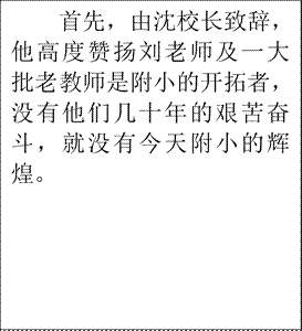 最后,刘老师发言,她非常高兴,非常激动,再次感谢附小的领导、老协及老师、学生为她过了一个永难忘记的生日!她表示,要健康地活着,争取明年回武汉来过重阳节,也一定要回附小来看看!大家都期盼着!