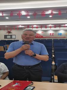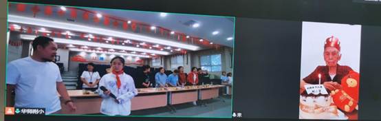 上午十点半,工会主席唐从义主持宣布祝寿会开始。只见端坐在深圳家中的刘老师身穿大红汉服,头戴寿冠,精神矍铄,桌前一个大蛋糕格外引人注目,上面写着“刘老师生日快乐!”