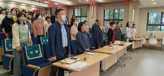 5月20日下午16:20,华中师范大学附属小学工会换届选举大会在学校四楼阶梯教室如期举行。华师附小桂子山校区及南湖校区全体教职工以网络连线的方式齐聚一堂,会议在庄严的国歌声中拉开序幕。