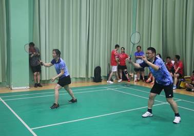 5月14日上午10点,我院迎来了小组赛第三场——对战培训中心。第一轮男双比赛中,凃正革老师、余锋老师作为首发出场。两位老师迅速进入比赛状态,很快与对手拉开了差距,首战告捷。第二轮混双比赛依然精彩,白云老师和谢志鹏老师彼此默契配合,高远球、近网球、搓球、切球都在表现着两位教师精湛的球技,很快以绝对优势取得了胜利。第三场男双比赛比分紧咬,气氛十分紧张和激烈,但吴磊老师和王江涛老师仍然成功击败对手。最终,我院以3:0的成绩战胜培训中心。