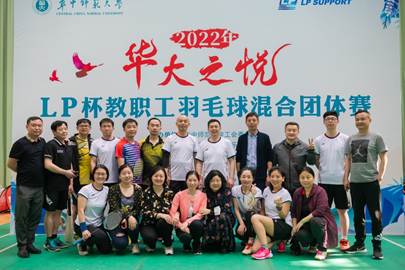 为喜迎二十大,提高教职工身体素质,形成全民健身的良好氛围,5月13日至14日,华中师范大学华大之悦LP杯教职工羽毛球混合团体赛在乒羽中心举行。出版社派出由总编辑刘从德、工会副主席罗明波等组成的代表队参赛,党委书记廖卫鹏、工会主席章光琼带领员工现场助威。