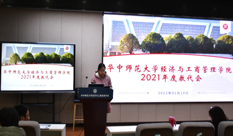 (通讯员 胡丽琴 黄苒)2021年1月14日下午,经济与工商管理学院2021年教代会在南湖综合楼10127会议室召开。教代会由正处级组织员闫丽莉同志主持,院党委书记聂耀华、院长涂正革、院工会主席李闻一、院党委副书记陈娟、副院长陈淑云、周维第、王治及学院一百余位教职工出席了会议。