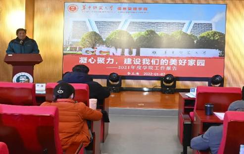 院长李玉海向大会作了“凝心聚力共创美好家园”为主题的学院工作报告,提出了推动学院“十四五”发展规划工作落实、“党建+学科”建设工作及教育教学和科研方面的发展建设的报告。