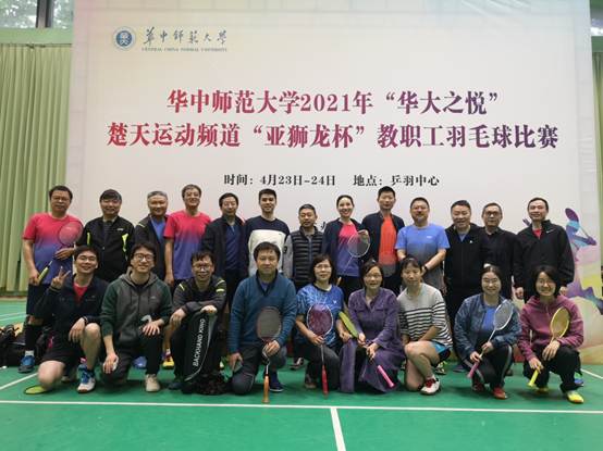 (物理学院 刘军)4月23日至24日,华中师范大学2021“华大之悦”楚天运动频道“亚狮龙杯”教职工羽毛球比赛在乒羽中心举行。本次比赛以部门工会为单位报名,设置混合团体赛。混合团体赛每轮共有男双、混双、男双、女双和男双五场比赛,采用五场三胜制,每场采用三局两胜制。