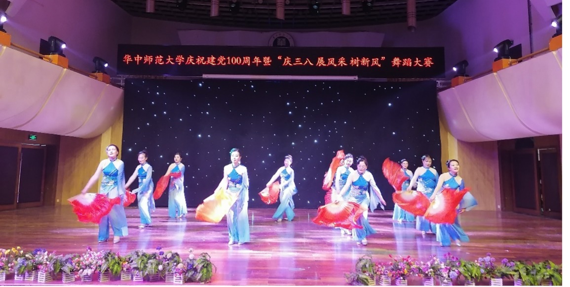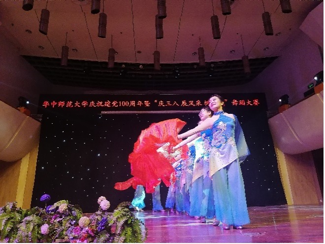 巾帼跟党走、建功新时代。华中师范大学第五届女教职工“庆三八 展风采 树新风”舞蹈大赛3月7日在学校音乐厅隆重举行。湖北省教科文卫体工会副主席、校党委副书记查道林等领导嘉宾出席活动。全校31支舞蹈队参与大赛表演,为观众献上了一场视听盛宴。我中心舞蹈队舞蹈《祖国,你好!》斩获“最佳风采奖”。