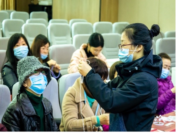 老师们在制作捕梦网