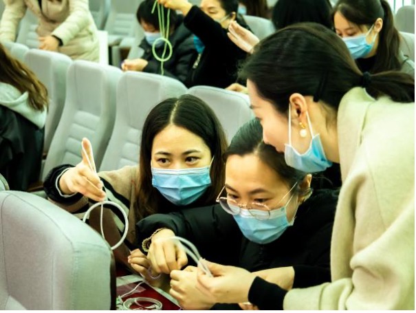 本次活动分为两个环节。在第一个环节中,老师们制作了寓意美梦的“捕梦网”。工作人员首先给大家分发了铁环、胶带、羽毛等材料。专业花艺师为大家详细讲解了捕梦网的制作流程及技巧后,老师们满怀热情,积极投入到捕梦网的制作中,现场气氛温馨而热烈。