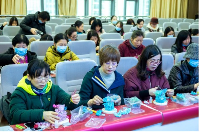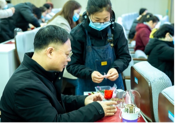 李闻一主席和老师们一起制作永生花玻璃罩礼盒
