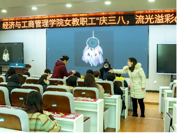 (通讯员 祁琦 高小寒)3月5日上午,由经济与工商管理学院工会主办的教职工“庆三八,流光溢彩diy”活动在南湖综合楼会议室10127顺利举行。院工会主席李闻一老师、正处级组织员闫丽莉老师、党委副书记陈娟老师、副院长陈淑云老师、工会委员王娟老师、吴艳老师、白云老师以及叶桦老师、王兰老师、彭红老师等三十余位在职和退休教职工参与了本次活动。