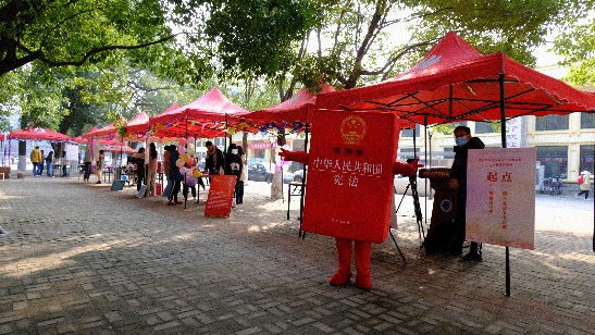 12月4日,在第七个国家宪法日来临之际,华中师范大学法律服务中心协同华中师范大学法学院学生会、研究生会等部门在东区小树林举办“宪法宣传周”系列活动之宪法游园会。本次活动以“深入学习宣传习近平法治思想,大力弘扬宪法精神”为主题,旨在贯彻中央全面依法治国工作会议精神,以实际行动学习宣传贯彻习近平法治思想,推动习近平法治思想深入人心、落地生根,大力弘扬宪法精神,使宪法法律融入日常生活、走近师生身边。