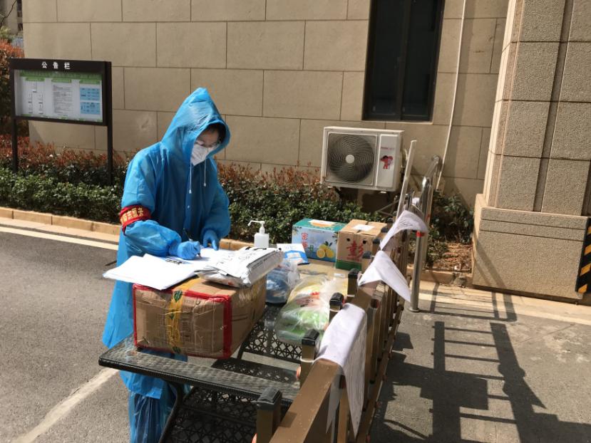 进入2月,方舱的建设成为最紧迫的任务,闵老师的丈夫临危受命安排至洪山区石牌岭方舱建设工程。建设期间人员不足、物资缺乏,她丈夫常常亲自搬运物资,还要到处筹措资源,终于如期完成了建设任务。随后又下沉到社区开展疫情防控工作。他在电话里跟闵老师讲得最多的就是社区工作如何复杂、社区工作人员又是如何缺乏,很多老人和困难家庭需要生活物资、药品等,而且闵老师通过窗户看到外卖小哥的忙碌、超市员工运送物品的辛苦,还有小区清洁员的坚守,这么多人默默守护社区居民的生活,身为一名共产党员她,坐在家里越来越不安心,萌生了做志愿者的想法,得到了家中两位老人的大力支持。于是她跟社区联系,报名成为珞桂社区的一名志愿者,每周执勤两次,负责小区的出入口检查以及协助物业配送小区居民的生活物资。在这期间,她发现很多困难群众生活窘困,于是又联系有心公益联盟,通过该联盟为社区困难家庭筹集物资,直接送到群众家里。闵老师说,危机关头作为党员就应该体现冲在一线、干在前面的党员本色。