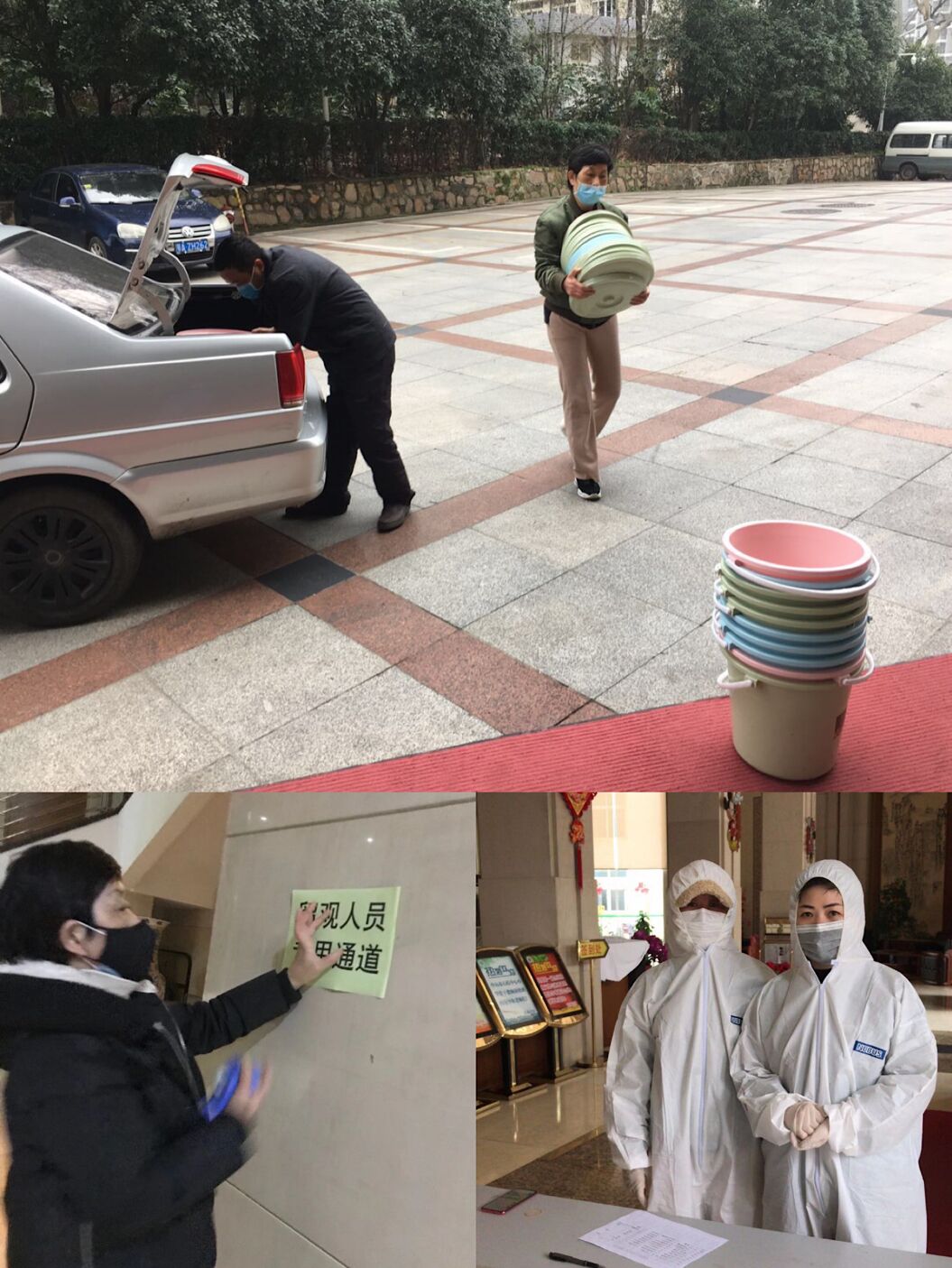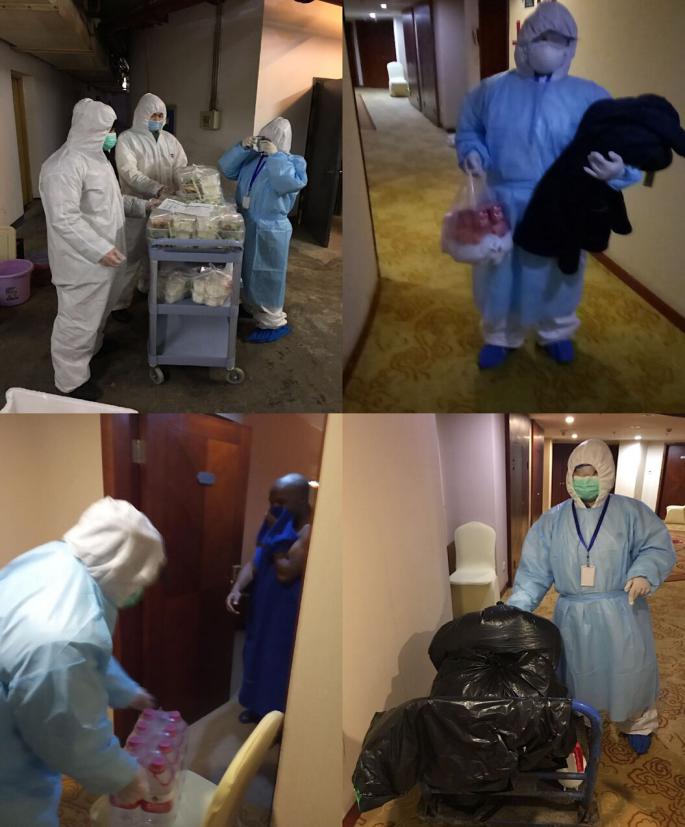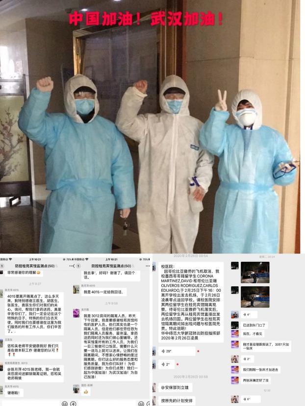 疫情是命令,防控是目标,服务是职责。自校党委及行政班子通过会议决定将接待服务中心作为防控隔离场所,桂苑宾馆上下立刻进入战备状态。桂苑宾馆因假期的原因在武汉的职工不多,最后召集不到十人,在不到两天的时间将建筑面积1.5万平的宾馆“改造成”符合防控指挥部要求的隔离场所。接收隔离者后又承担着场所消杀、医疗物资申领、采购、后勤保障、生活垃圾和医疗废弃物的处置等琐碎非常规岗位的工作。这个不到十人的小团队中有三名坚强的女同胞,很好的践行桂苑的文化,庄严的履行作为学校抗疫工作众多者之一的使命和职责。她们是袁丽萍、石梅、李小真。
