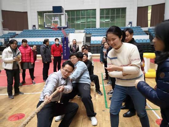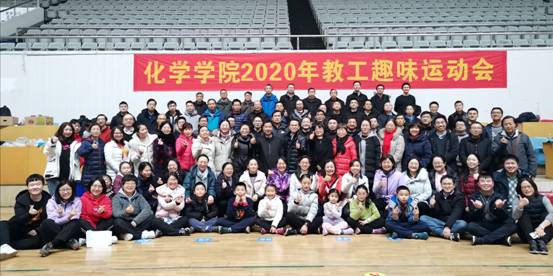 (通讯员 彭浩 摄影 周红斌)为促进学院文化发展,加强教师间交流,提高教职工身体素质, 华中师范大学化学学院于2020年1月4日下午在校佑铭体育馆举行了一年一度的教职工趣味运动会。来自行政、物理化学、环境化学、分析化学、无机化学、有机化学、化学教育、农药化学教研室,测试中心、实验中心的130多位教职工参加了比赛。运动会由工会副主席邱明强老师组织,并担任总裁判长,肖文精院长和院党委书记邱宝国向教职工发表新年祝福。