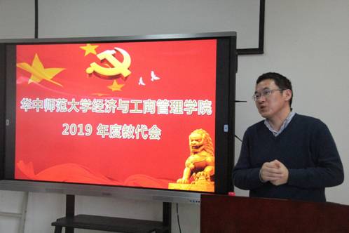 大会第三项,院长涂正革同志分别从科研、教学与国际化三个方面总结了本年度工作情况。在科研方面,我院多项科研工作成绩斐然:我院教师本年度共发表了72篇论文,其中,CSCCI期刊发表量在本年达到了36篇,SSCI期刊发表量达到了22篇,与2018年相比增加了9篇。在研究生教学方面,提出应重点推进研究生课程改革,不断完善研究生学术奖励机制,发挥研究生在我院科研的主力军作用。在本科生教学方面,他肯定了教职工本年度的辛勤工作,对青教赛、金课建设和获得湖北省基层优秀教学组织等表示祝贺,并提出应加强经济学等多门学科的课程建设,推动我院教学的发展。在国际化方面,他提出在近几年内将争取扩招国际学生,以进一步推动我院国际化发展。