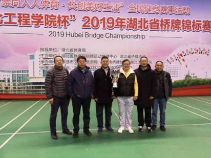2019年湖北省桥牌锦标赛在孝感市湛林体育馆(湖北工程学院校内)举行,由我校教工曾庆肃、王柏新、梁上启、梁沛等组成的华中师范大学教工代表队取得了瑞士制团体赛第一名的历史最佳成绩。
