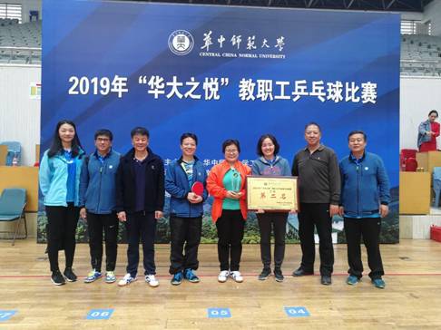 11月15日-17日,华中师范大学2019年教职工乒乓球比赛在佑铭体育馆举行。本届乒乓球比赛由校工会主办,教职工乒乓球俱乐部承办,共30个部门工会约550人次参加了此次比赛。比赛分为甲乙两组,经过三天的比拼,城市与环境科学学院全体教工同心同力、奋力拼搏,院教工乒乓球队勇夺此次比赛乙组男子团体亚军,再次晋级甲组。