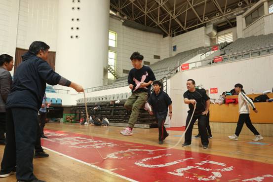 比赛还未开始,我院教工就提前一个小时来到比赛现场,熟悉比赛环境并积极训练。在训练过程中,教工们尝试了不同的跳绳方式。经过多次实践,大家逐渐摸索出了有效的方法。最终,大家决定将绳子适当缩短,打三个结,两侧结之间的距离便是最佳起跳点。这一方法使得大家快速地确定跳绳位置,节约了大量时间。