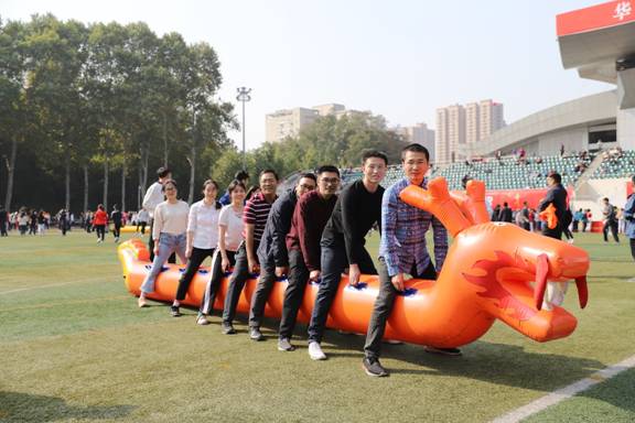 10:40比赛正式开始,裁判发令后,运动员们手扶“龙背”,8人双脚撑地,骑坐在充气龙舟上奋力向前,场上“一二、一二”的口号声与加油声此起彼伏,我院教职工喊着响亮的口号,齐心协力跑向终点。前来加油助威的老师和同学们站在道旁高声欢呼,气氛十分热烈。