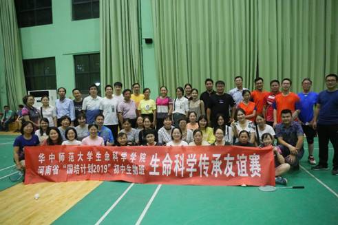 为加强生命科学学院与河南省“国培计划2019”初中生物班青年教师之间的交流,增进双方友谊,丰富大家的文娱生活,9月25号晚上8点,由生命科学学院举办的羽毛球友谊赛在乒羽中心顺利举行。生命科学学院书记邱玉华、工会主席王少辉、院办主任邓梅峰出席了本次活动,河南省“国培计划2019”初中生物班与我院共计20余名青年教师参与比赛。