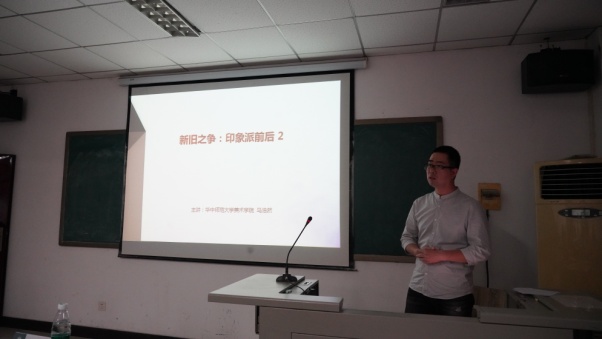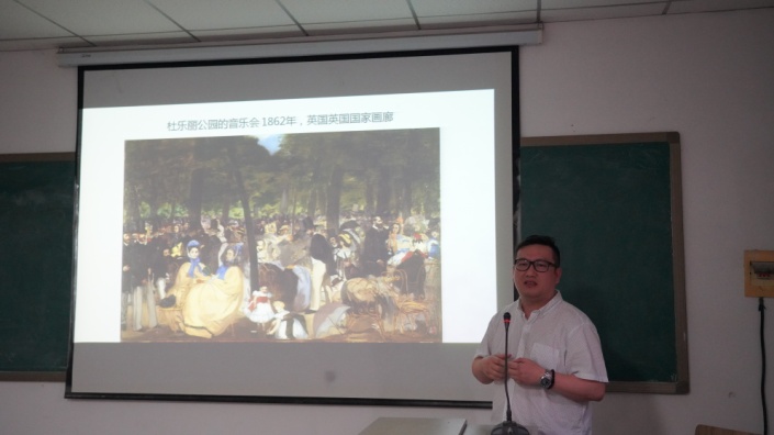 丁可人老师讲解了《空间设计基础》一课,她从哲学高度对空间的概念进行解析,通过对空间的功能的讲授与分析,启发学生思考结构对空间的影响,进而引出空间的审美基本原则,如:比例、尺度、韵律、均衡等问题,其教学设计注重学术性,内容充实,体现出学科发展的新概念与新成果。马浩然老师在《油画基础》这一课程中选择“新旧之争:印象派前后”这一教学节段,带领学生纵览了19世纪60年代至20世纪初油画的发展变化,他使用一张高度写实的静物画自然地导入教学内容,引导听众思考莫奈早期艺术作品,通过对油画作品的对比分析,使听众理解印象派发展的时代背景,理解其艺术理念与精神内涵。徐谦老师的《课堂写生与创作的关系》引导学生思考如何将素描写生转化为专业创作。姚元鲁老师结合精美的图片与视频讲述了石版画的制作过程。李刚、李舵、龚琦芳、胡凡、何宇、唐文等老师也分别讲授了他们精心制作的教学内容,引得评委们频频点头。
