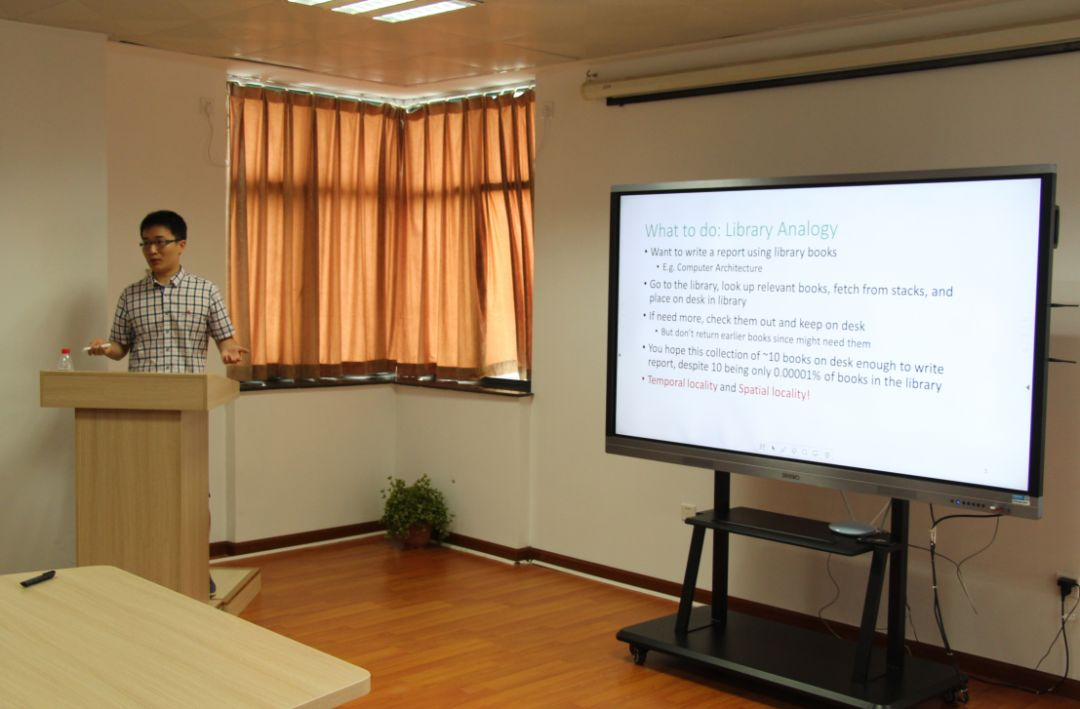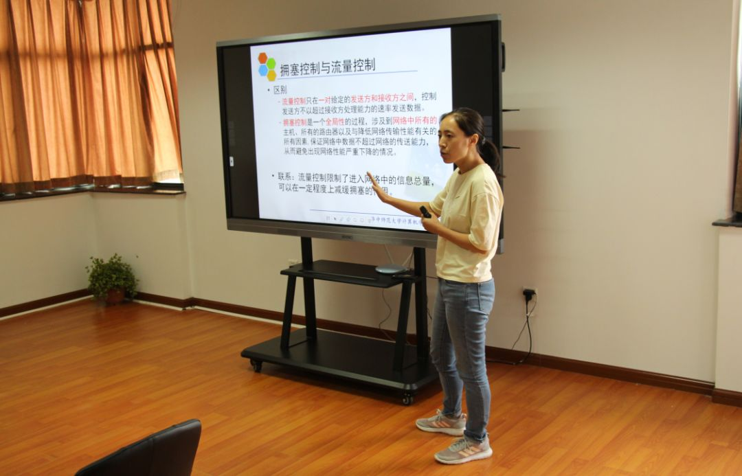 随后,参赛的八名教师依次进行时长为20分钟的授课。张伟老师讲解了半群与群的相关概念,教学环节完整,教学思维严谨。赵素芬老师讲解了计算机基础,从人类开始计数到现代计算机的诞生,系统地回顾了计算机发展的历史,并鼓励学生积极思考科学研究中的问题。李沛老师选择的主题是计算机缓存于虚拟内存工作,他以图书馆借书为例,生动形象地讲解了缓存的工作原理。常亚楠老师以深入浅出的授课方式,从行车到达目的地为例,讲解了拥塞窗口的相关知识。李增扬,罗昌银、钟睿与周光有老师也分别讲解了软件体系结构概论,数据库系统概论关系数据理论,贪心算法,云计算基本原理的相关知识。