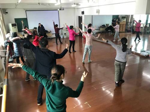 (我院教职工在田家炳楼十楼舞蹈房排练舞蹈)