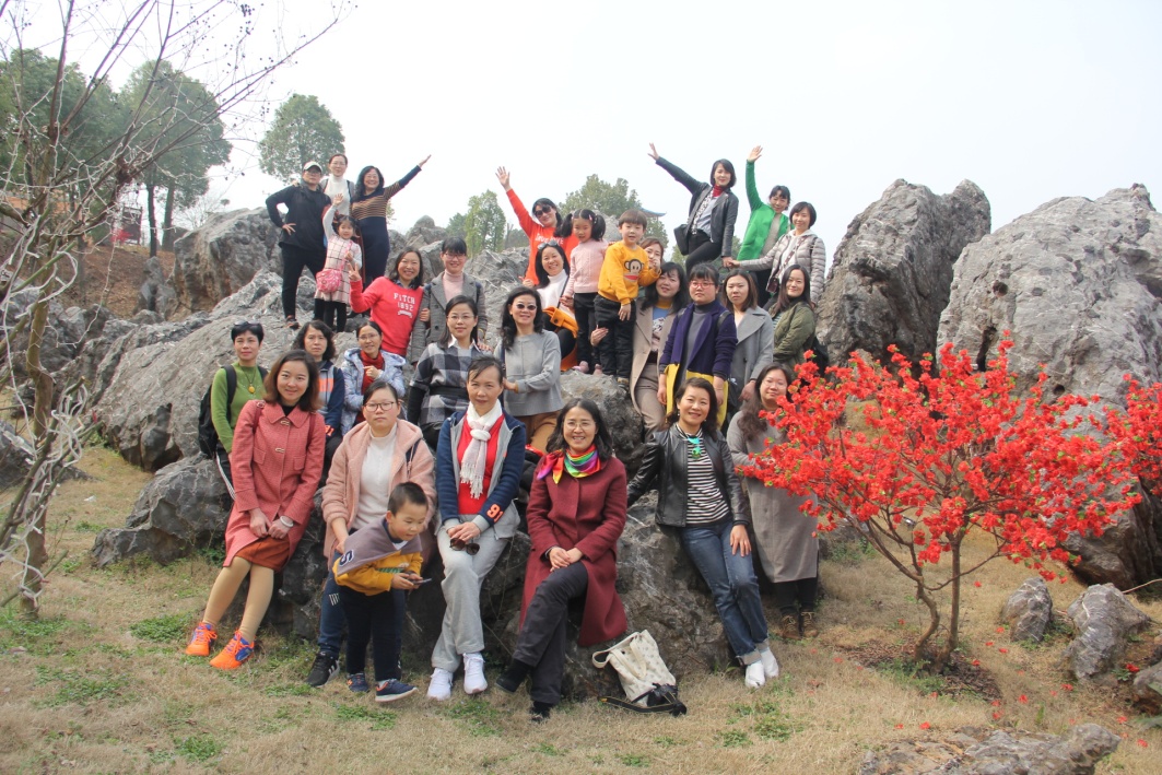 时值春暖花开,莺歌燕语,处处春意盎然。上午,走在郊外的小路上,伴着鸟鸣与阳光,呼吸新鲜空气,女老师们感受着大自然的清新、恬静。在奇石边,在花丛中,大家笑靥如花,选取最佳角度,相互拍照留念。一些女老师还勇敢的尝试了丛林穿越的拓展项目。面对各种挑战,大家互相鼓励、齐心协力,在完成任务的同时,收获了友谊和快乐。