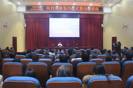 签约仪式结束后,杨凯教授以“现代公共法律服务理念与司法体制的现代化转型”为主题,给干警进行了讲座。杨凯教授通过丰富的实例,讲述了现代公共法律服务理念的内涵以及基层政法部门开展公共法律服务的方法和路径,为政法干警提供了有益借鉴和理论指引,对提升司法公正和执法办案服务效果具有较好的理论实践指导意义。大悟县委政法委相关领导、大悟法院全体干警及检察院、公安局、司法局干警代表聆听了讲座。