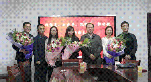 活动伊始,2018年结婚的4对新人(胡继亮、陈梦璐;赵晓梦、杞如福;孔祥贞、李军;郭舒航、潘方方)给大家分发了喜糖,随后,聂耀华书记对四对新人表达了诚挚的祝福,并代表学院为他们送上了祝福的花束。