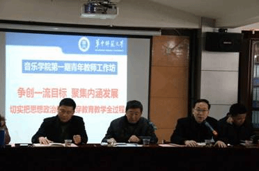 孙永祥书记介绍了音乐学院的现状,并指出青年教师是音乐学院的中坚力量和中流砥柱,也是音乐学院的未来和希望,并强调本次座谈会旨在倾听青年教师心声,希望各位老师“出实招,出真招”。音乐学院副院长吴凡对全国各优秀的院校进行了大致的分析并提出实质性的建设问题,并表述了如何让华中师范大学音乐学院跟上时代浪潮的观点。音乐学院党委副书记叶雷以复旦大学陈果教授的走红引出课程思政问题。他表示,人才培养应该结合专业培养,不能够“关起门来”,应该利用音乐、舞蹈学科的特色优势,培养中国特色师范生。