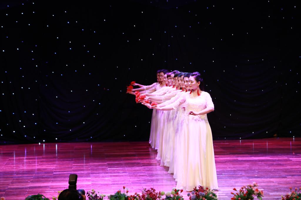 展演开始,我院教师清颜白裙高贵绝俗,手持娇艳红花若仙若灵,淡淡然笑,在板蓝花开的背景下演绎《花开烂漫时,花舞阳光下》,举止处有幽兰之姿,一步一态展现着教院的典雅气质与优雅风范。我院凭借优异的表现,荣获“最佳表演奖”。