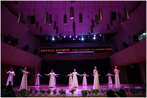 为庆祝“三八妇女节”,2018年3月10日下午2点,华中师范大学第三届女教职工“庆三八 展风采 树新风”服装展演在音乐厅举行,全校各院系、附属单位共三十个代表队齐聚音乐厅,为全场观众呈现了一场精彩的视听盛宴。32个节目各具特色,400多套服装风情无限。本次服装展首次在网上进行直播,引得数千网友点赞。教育学院教职工代表队凭借优异的表现,荣获“最佳表演奖”。