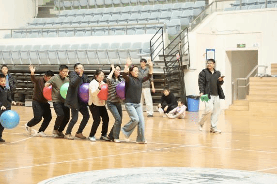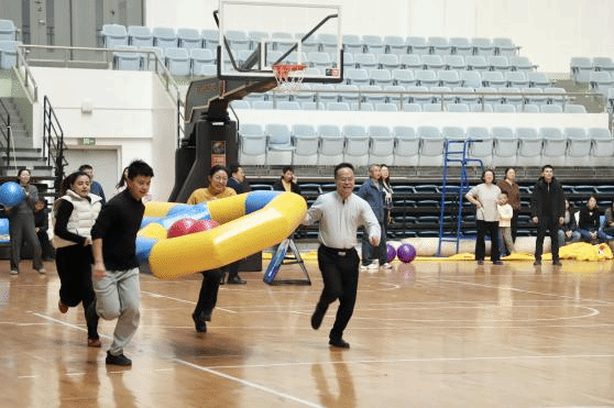 赛场上,各项目亮点纷呈。拔河比赛作为全场首个集体项目,瞬间点燃了现场氛围。各代表队队员们拼尽全力稳住阵脚,场边助威声此起彼伏,将团队协作的力量展现得淋漓尽致。“龙马精神”、“蜈蚣竞走”则考验着小组的同步性,大家喊着整齐的口号稳步前行。此外,“公鸡下蛋”的逗趣场面、“十拿九稳”的全力奔跑,也让现场充满欢声笑语,老师们纷纷卸下压力,享受运动带来快乐。