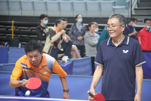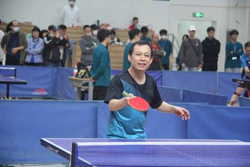在随后的男单比赛中,余峰老师沉着应战,不断变化着战术和打法,展现了高超的球技,以3:0的绝对优势赢得比赛。