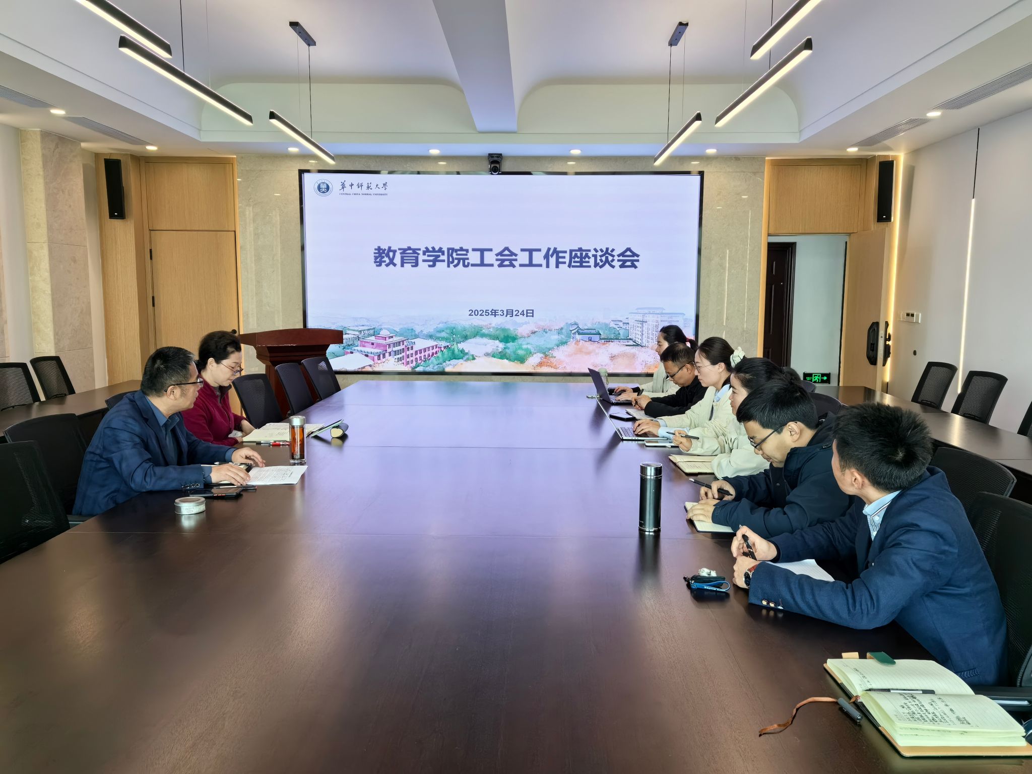 3月24上午,2025年教育学院工会工作座谈会在田家炳楼901会议室召开,教育学院党委书记陈雪玲、教育学院工会主席王建梁、副主席伍远岳、青工委员尹国强、宣传委员宫慧娜、女工委员王诗薇、工会小组长邢欢、孙银光、白颖颖等参加座谈。会议由院工会主席王建梁教授主持。