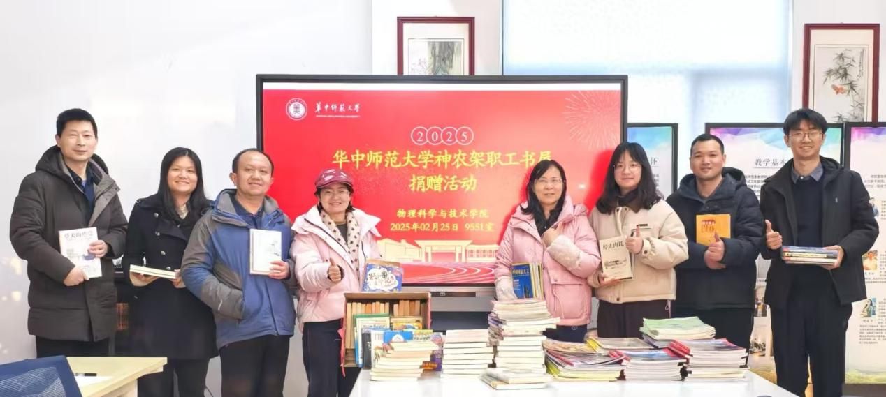 2月25日下午,“神农架职工书屋公益捐书活动”在九号楼551会议室顺利举行。本次活动由校工会与物理学院联合发起,旨在深入贯彻落实中国工会第十八次全国代表大会精神,弘扬华中师范大学“博学、博爱、博雅”的校训精神,为神农架木鱼镇职工书屋服务站筹集图书资源,为当地居民及景区游客提供文化服务,助力乡村文化振兴。