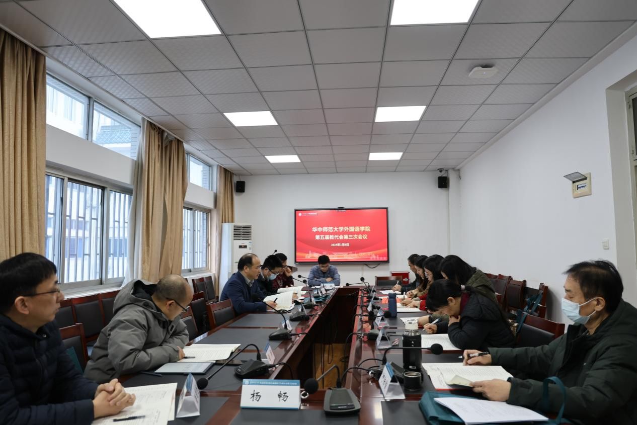 2025年1月8日上午,外国语学院第五届教代会第三次会议在3504报告厅隆重举行。华中师范大学党委副书记查道林、校工会副主席易仲芳、学院党委书记麻旎、院长罗良功、外国语学院教代会代表以及部分教师代表共同出席了此次会议。