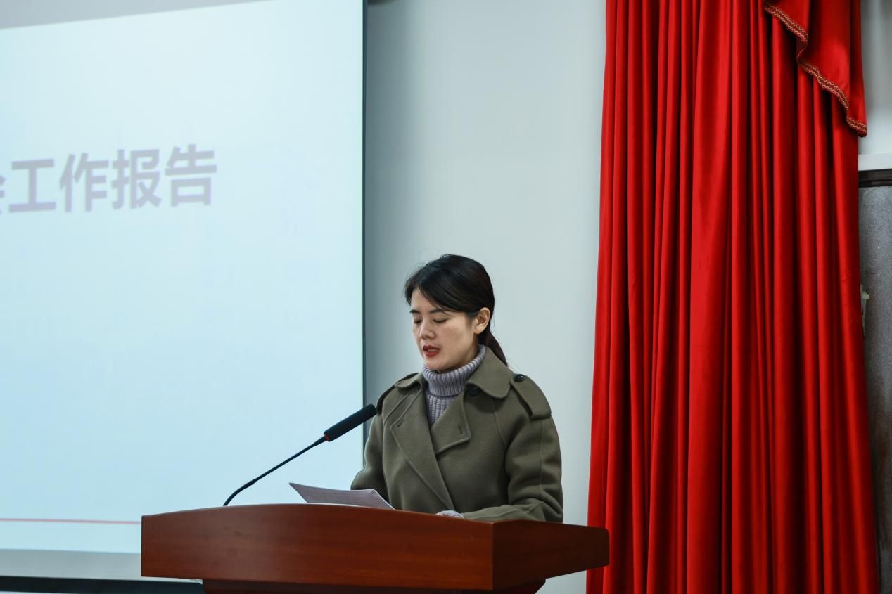 大会第五项,院工会主席陈欧阳作2024年度工会工作报告。她从建设关爱教职工身心健康的“温暖之家”、建设民主监督和民主管理的“民主之家”、建设助力教师成长和学院发展的“发展之家”三个方面,介绍了2024年学院工会工作,并表示2025年学院工会将继续推进“三家工程”,发挥工会在文化建设、沟通桥梁、制度保障等方面的积极作用。