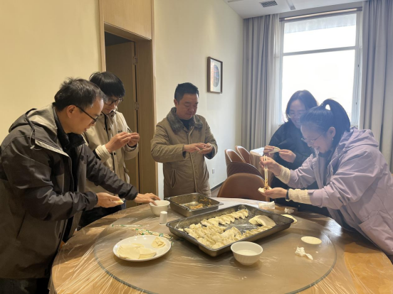 仅仅半个钟头,十余盘饺子已然成型,排队下锅。大家围桌而坐,品尝亲手制作的美食,交流工作生活心得,庆祝冬至节气的到来,互相送上健康、团圆和吉祥的祝福。