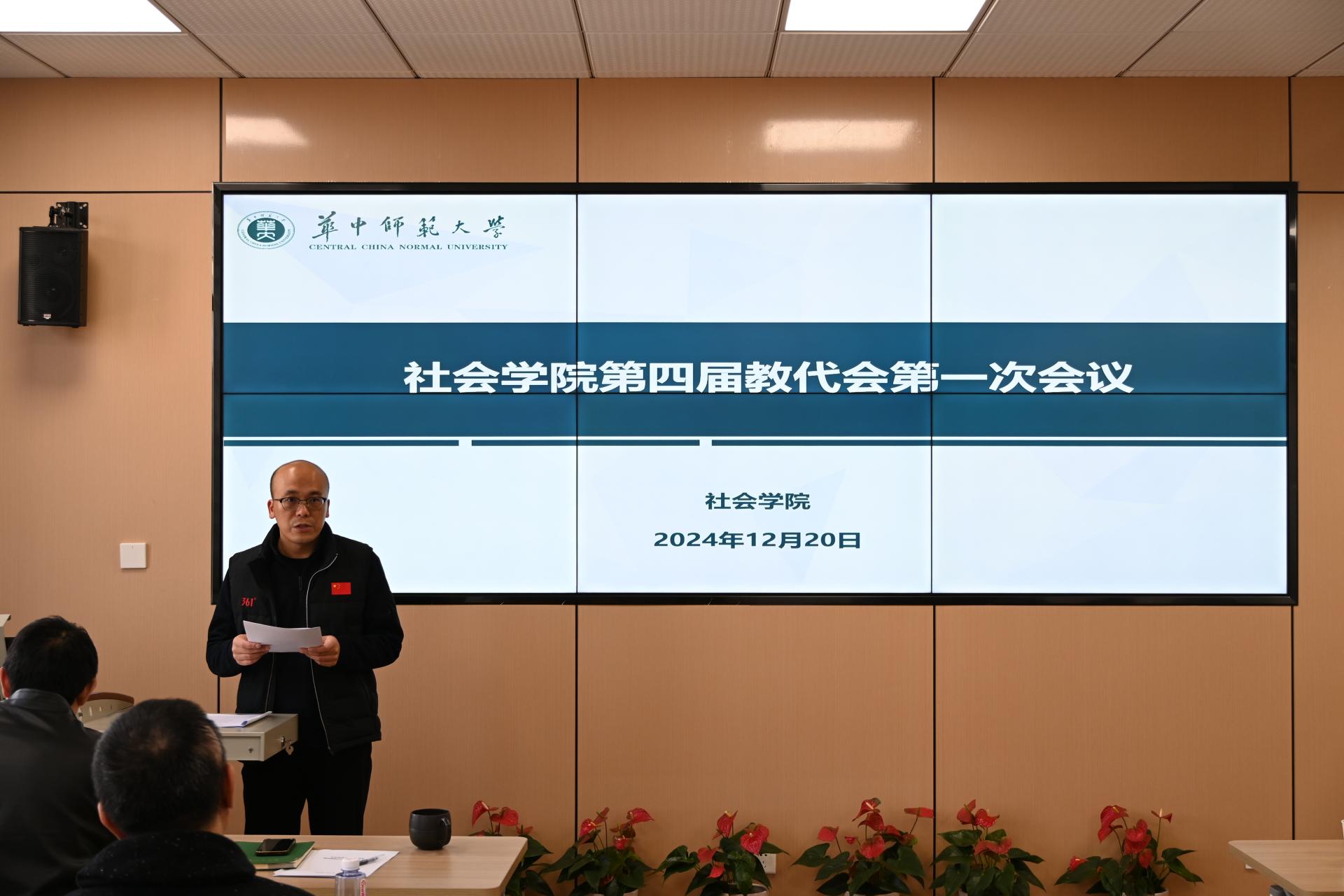 (通讯员 金小红)2024年12月20日,华中师范大学社会学院第四届教代会第一次会议在社会学院912会议室顺利召开。本次会议旨在总结学院2024年度工作,讨论并通过相关暂行规定及实施办法,进一步推动学院的民主管理和民主监督。学院全体正式代表参加会议,会议由院工会主席金小红主持。