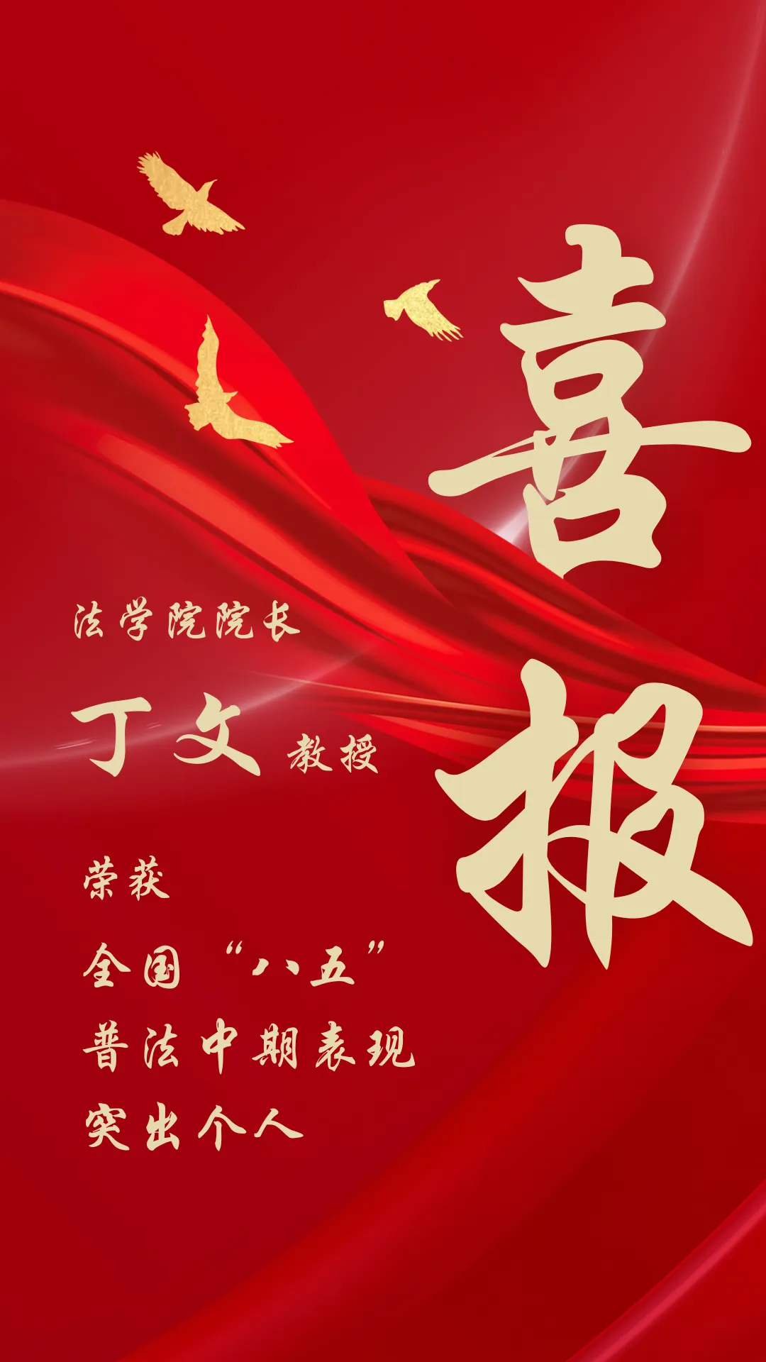 为提高各地、各部门行业开展法治宣传教育的积极性,进一步推动普法依法治理工作深入开展,近日,司法部、全国普法办印发《关于通报表扬全国“八五”普法中期表现突出的单位和个人的通知》,对中央纪委国家监委新闻传播中心专题部等1793个表现突出的单位,1556名表现突出的个人予以通报表扬。我院院长丁文教授受到表扬。据悉,湖北省共有53名个人获此殊荣。