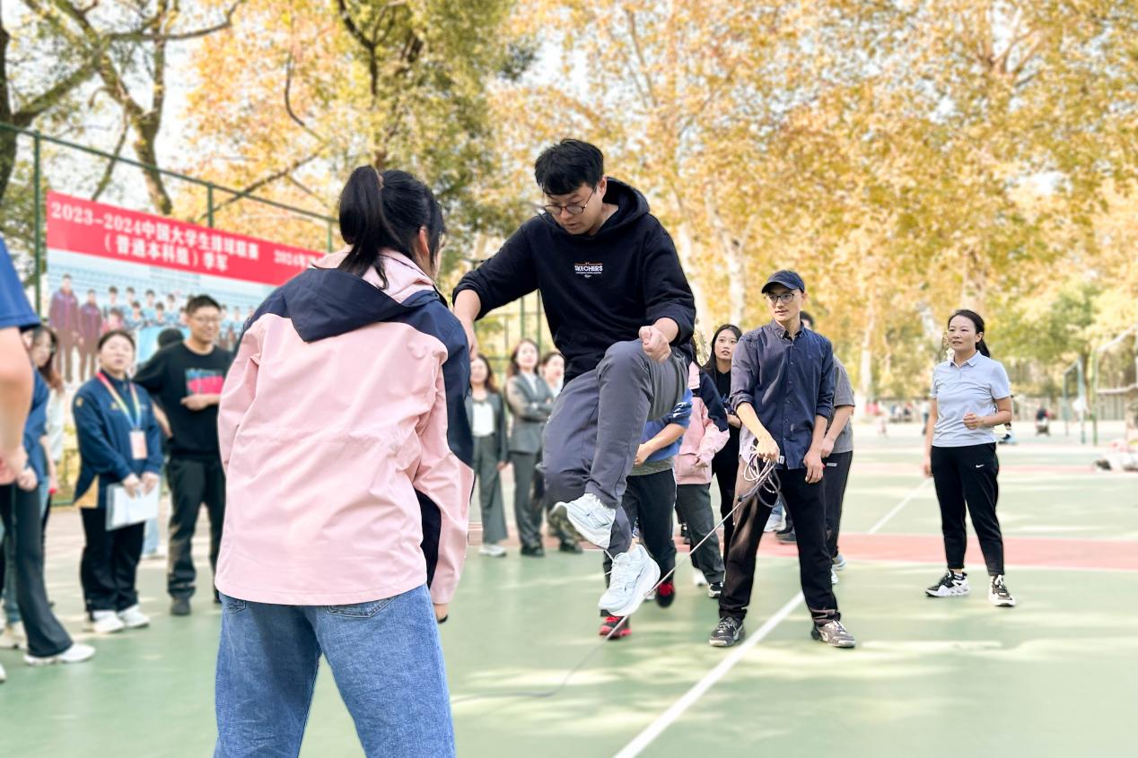 在跳绳比赛中,·他们同样表现出色。信管教职工们身姿矫健,步伐轻盈,一个接着一个,有条不紊地在长绳间穿梭。参赛选手们齐心协力,配合默契,展现出高超的技巧和协调性。运动场上气氛热烈而高涨,加油助威声此起彼伏,信管教职工们戮力同心,奋勇向前,展现出信管团结友爱的精神风貌。