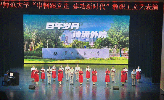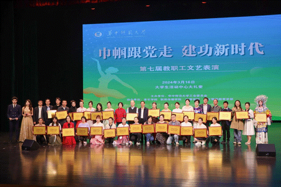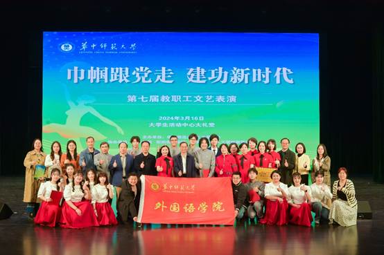 华中师范大学“巾帼跟党走 建功新时代”第七届教职工文艺表演活动于3月16日下午在新大学生活动中心顺利举行,校党委书记夏立新、校长彭双阶、校党委副书记查道林等出席此次活动,我院大学英语第一教研室获评华中师范大学第五批“巾帼文明岗”,我院原创诗乐咏颂节目《百年岁月,诗咏外院》喜获“最佳风采奖”。