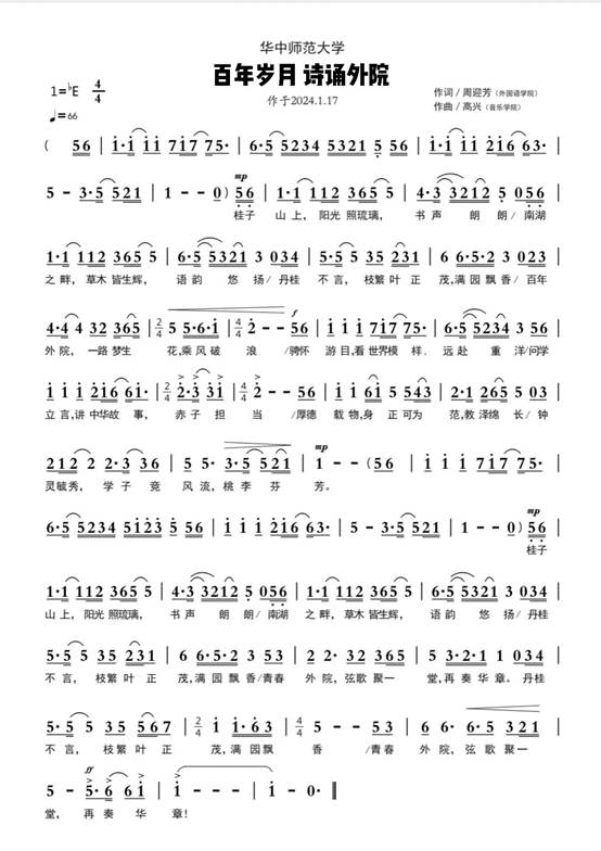 在学院党委的高度重视与具体指导下,学院工会何卫华主席、高苏副主席、蒋文颖等老师自上学期便着手进行组织与筹划。经过历时近一个月的排练,学院党委书记麻旎,李俄宪、何举纯、陈志红、周迎芳、刘东、周易、蒋文颖、张紫韵老师与同学们共同献上原创诗乐咏颂节目《百年岁月,诗诵外院》,以迎接外国语学院“百年院庆”。该作品由公外系周迎芳副教授原创作词,音乐学院高兴同学谱曲并担任钢琴伴奏,学院电教中心杨硕、汪龙玥老师制作背景视频。