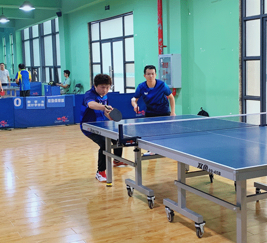 前四场比赛双方战至2:2平,接下来的男子双打至关重要。我院派出了年轻的钟佩文老师和吴昊老师。他俩初生牛犊不怕虎,稳打稳扎,渐入佳境。双方的比分交替上升,赛场的气氛进入高潮,加油声、鼓励声、喝彩声此起彼伏。最后,我院凭借局分优势险胜对手,挺进四强。