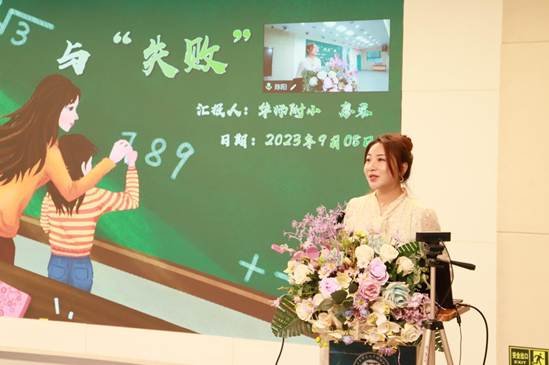 大会第七项,华师附小四位优秀教师与全体教职工分享她们的教育教学心得体会。